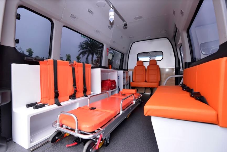 Sở hữu kích cỡ lớn, xe được trang bị cáng và túi cứu thương tiêu chuẩn, hệ thống dây điện chống cháy an toàn sẵn sàng lắp đặt thêm các trang bị y tế chuyên dụng hiện đại khác.