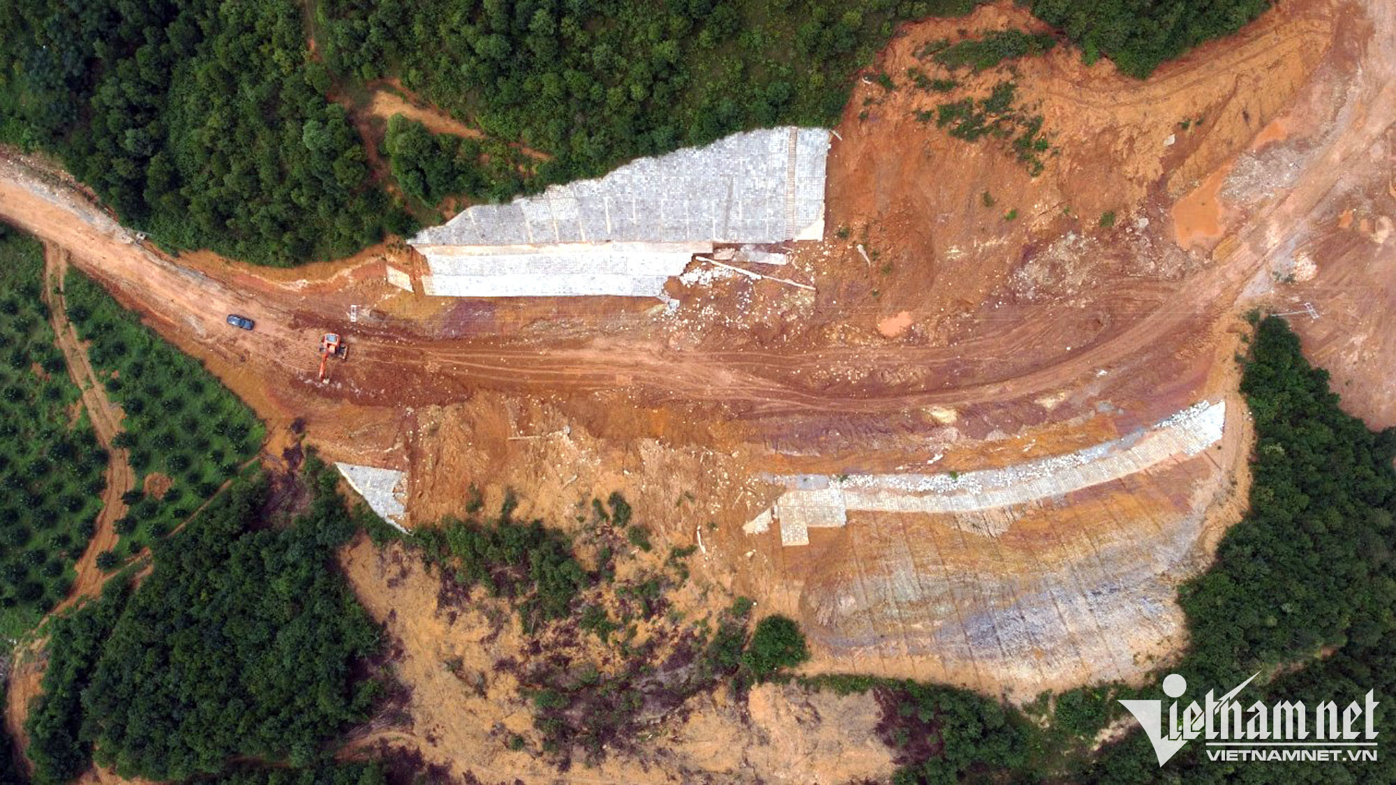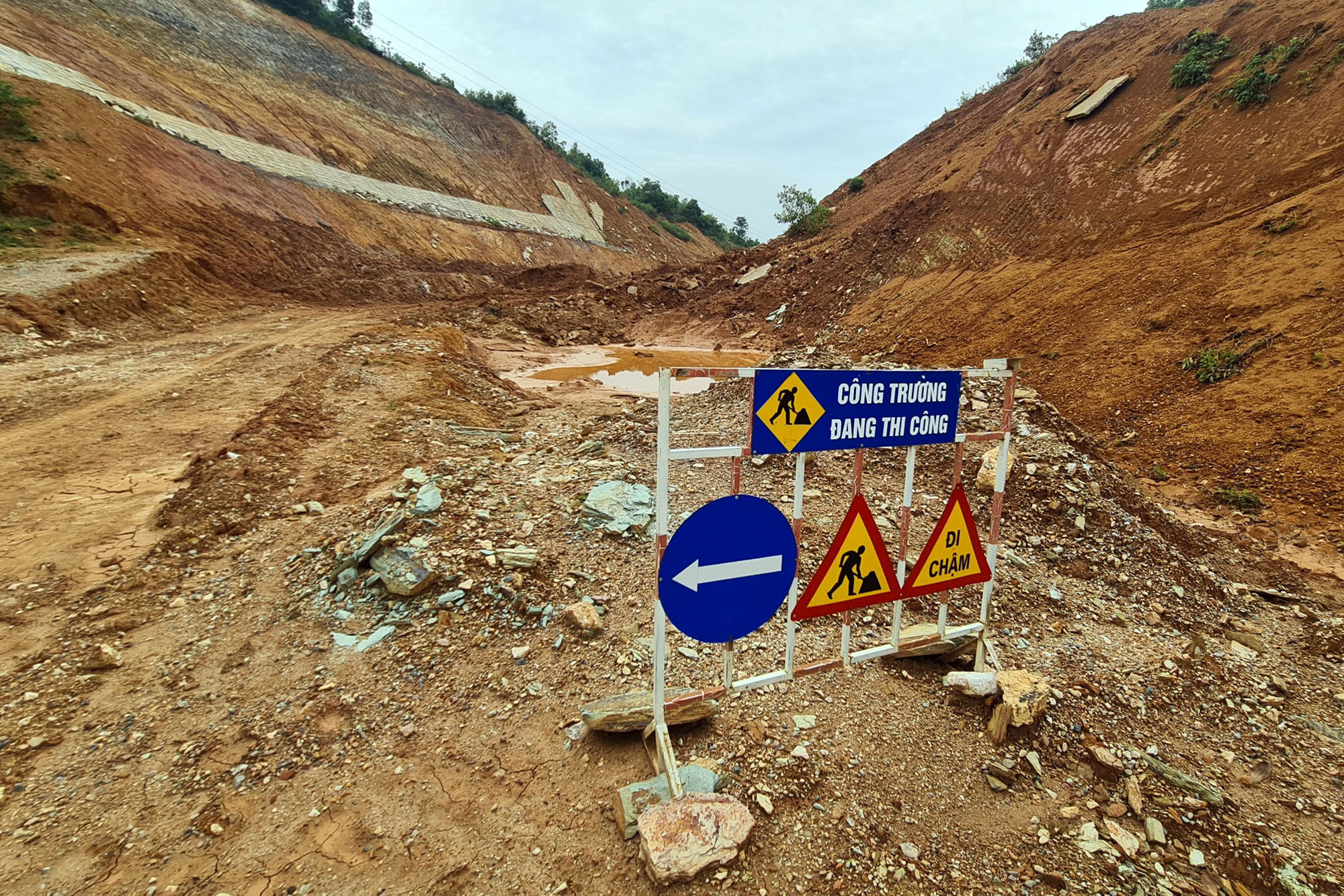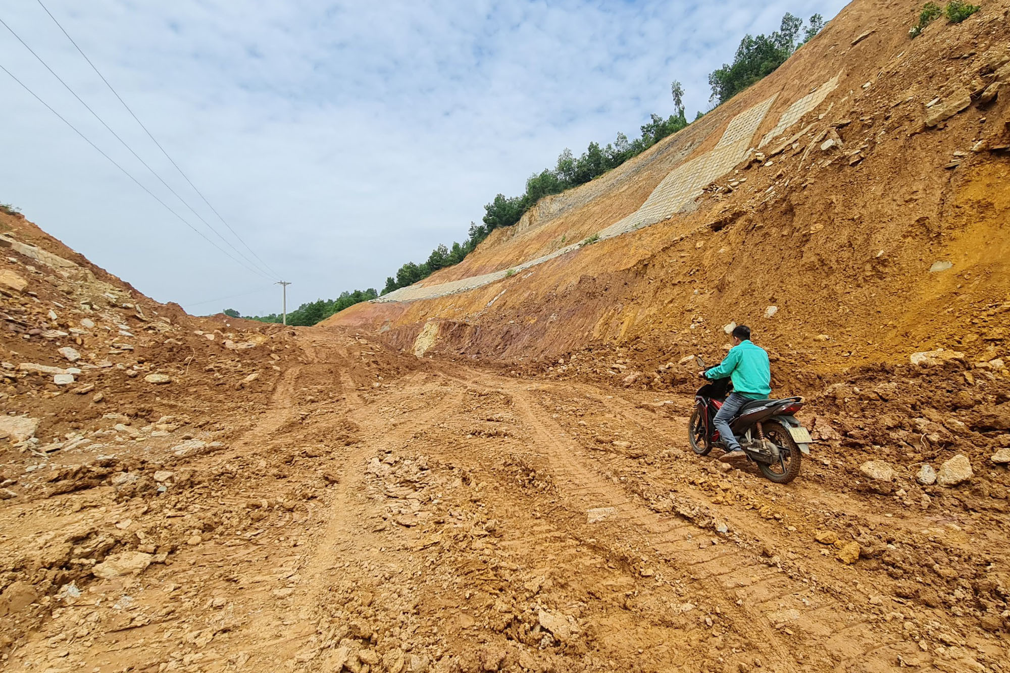 Công trình vẫn đang ở giai đoạn san đồi, bạt đất để hạ độ cao; đất đá ngổn ngang, không có lối đi…