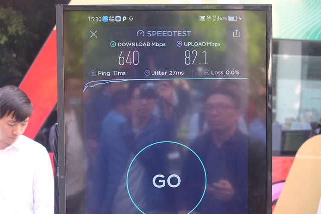 Trải nghiệm 5G thực tế của tại quận Hoàn Kiếm, Hà Nội, ghi nhận tốc độ download trung bình từ 600 - 700 Mb/giây, và tốc độ upload xấp xỉ 100 Mb/s - cao hơn nhiều lần so với mạng 4G. (ảnh: Nguyễn Nguyễn)
