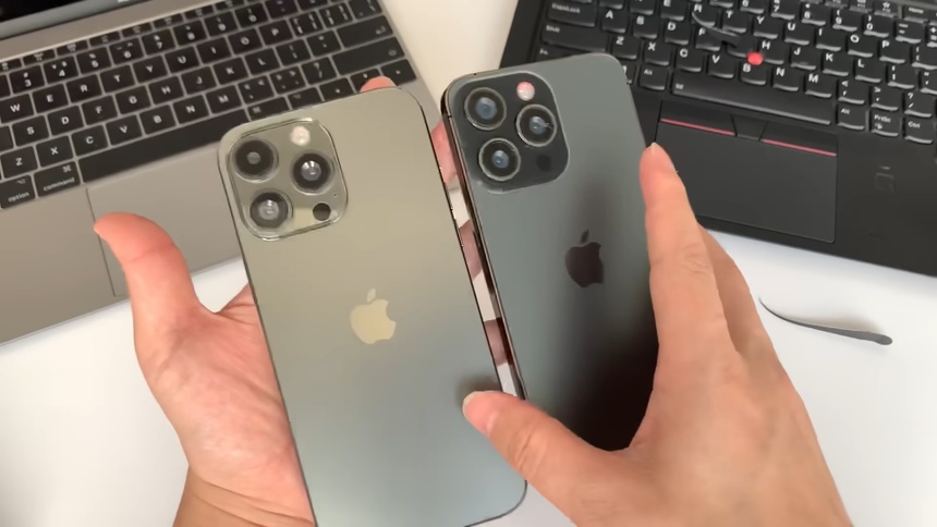 Sản phẩm cũng có cụm camera phía sau lớn hơn iPhone 13 Pro, phần màn hình đục lỗ dạng “viên thuốc” thay cho “tai thỏ”. Tuy nhiên, phần khuyết trên màn hình này chỉ được bố trí camera trước chứ không có cảm biến Face ID như trên iPhone chính hãng.