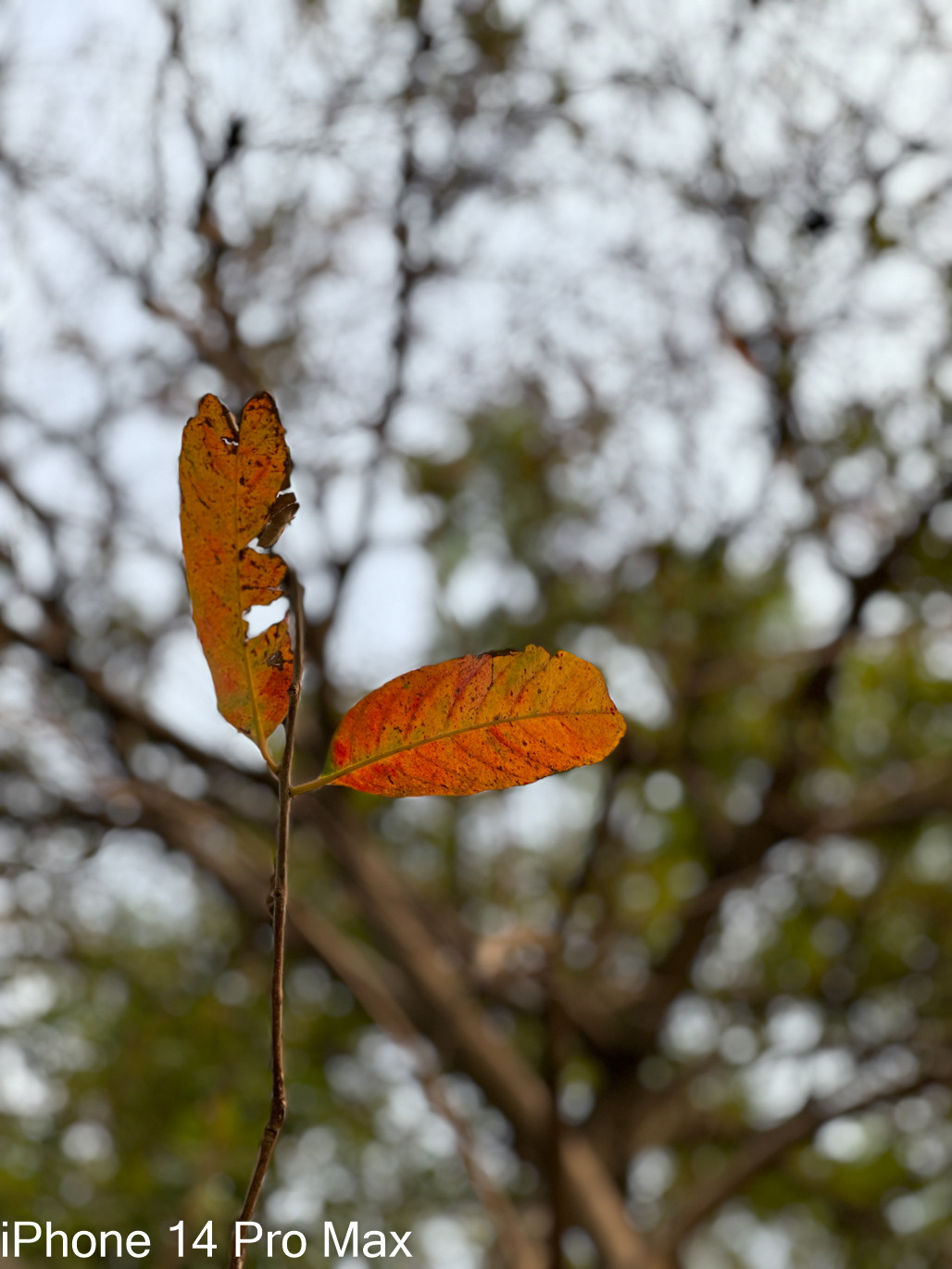 Thành quả của 2 mẫu máy khi thử chụp ngược sáng. Có thể thấy, hình ảnh chụp từ iPhone 14 Pro Max có sự tách bạch rất rõ giữa chủ thể bức hình là chiếc lá với phần nền phía sau.