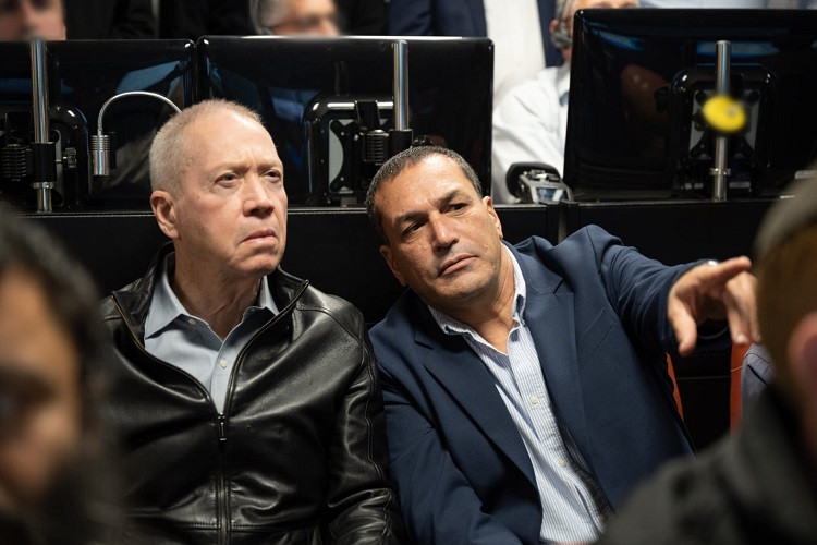 Vệt sáng tạo bởi tên lửa mang theo vệ tinh Ofek-13 lên không gian. Ảnh: Bộ Quốc phòng Israel Bộ trưởng Quốc phòng Israel Yoav Gallant (trái) quan sát vụ phóng vệ tinh. Ảnh: Bộ Quốc phòng Israel