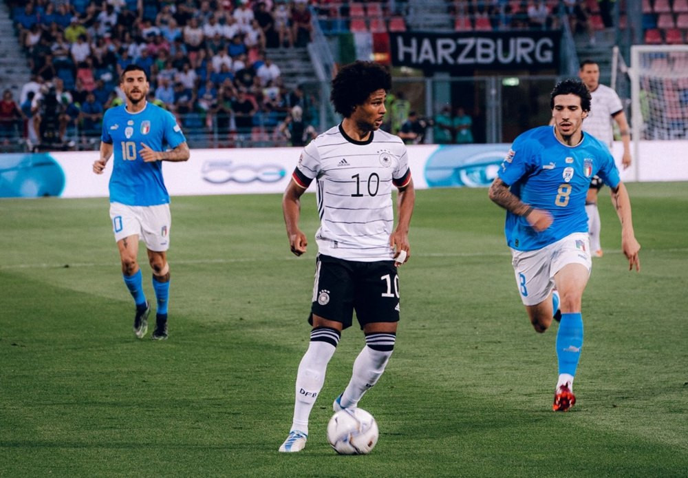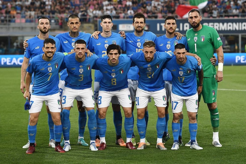 Đội hình xuất phát của Italy trận tiếp đón ĐứcTuyển Đức (áo trắng) kiểm soát bóng vượt trội so với Italy (35% so với 65%) Tuy nhiên, số pha dứt điểm của hai đội là ngang nhau, cùng có 10 lầnPellegrini (số 10) ghi bàn mở tỷ số cho Azzurri ở phút 70Niềm vui của đội chủ nhà với bàn thắng mở tỷ sốTuy nhiên, các cầu thủ Đức gỡ hòa chỉ sau đó 3 phút, nhờ công của Kimmich Quãng thời gian còn lại hai đội chơi ăn miếng trả miếng Tuy nhiên không có bàn thắng nào được ghi thêmTiền đạo Thomas Muller không thể ghi bàn vào lưới Italy