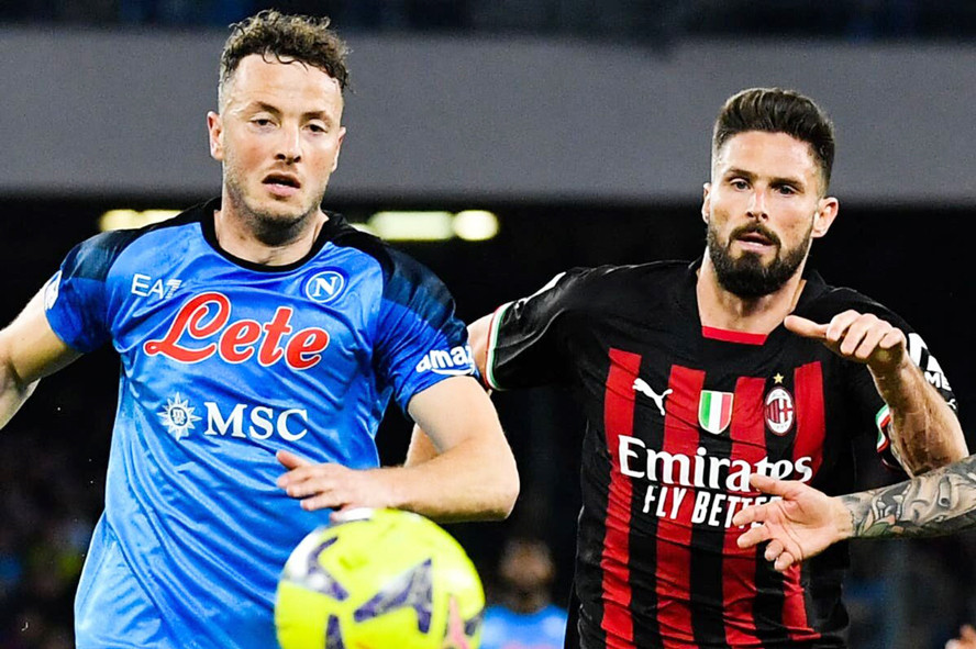 Các cầu thủ AC Milan cố gắng kìm hãm nhịp độ. Ở chiều ngược lại, Napoli liên tục dồn bóng cho Kvaratskhelia bên cánh trái.