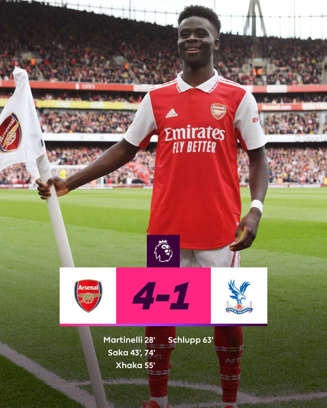 Bàn thắng (2-0, Bukayo Saka): Ben White kiến tạo thông minh cho Saka lẻn vào vòng cấm rồi dứt điểm chìm chân trái nhân đôi cách biệt.