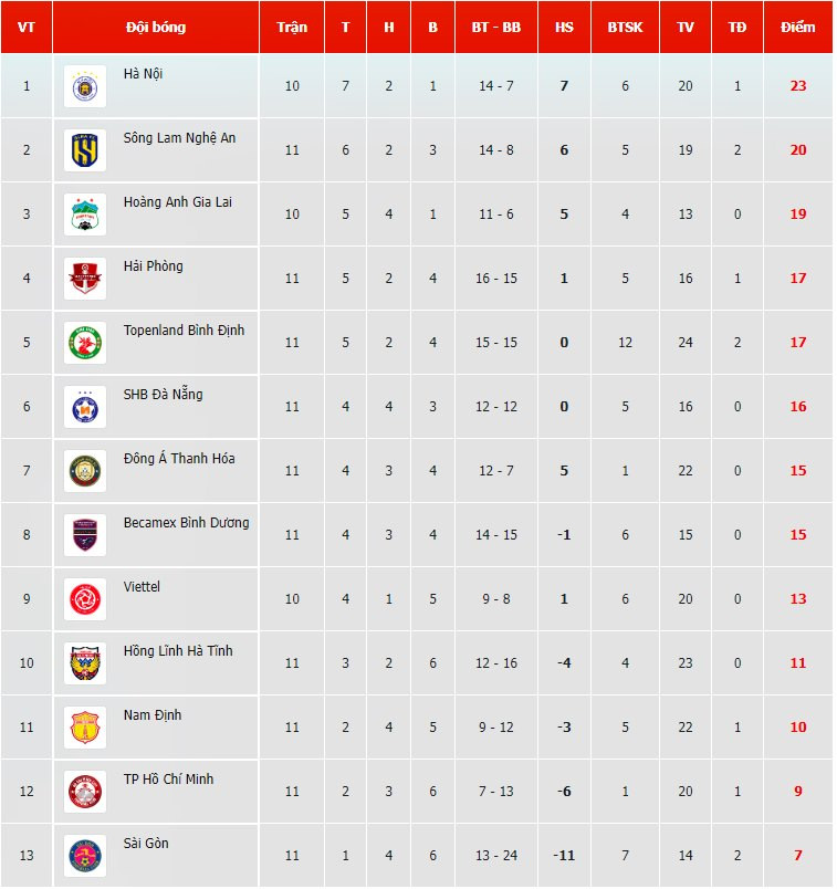 Bảng xếp hạng V-League 2022