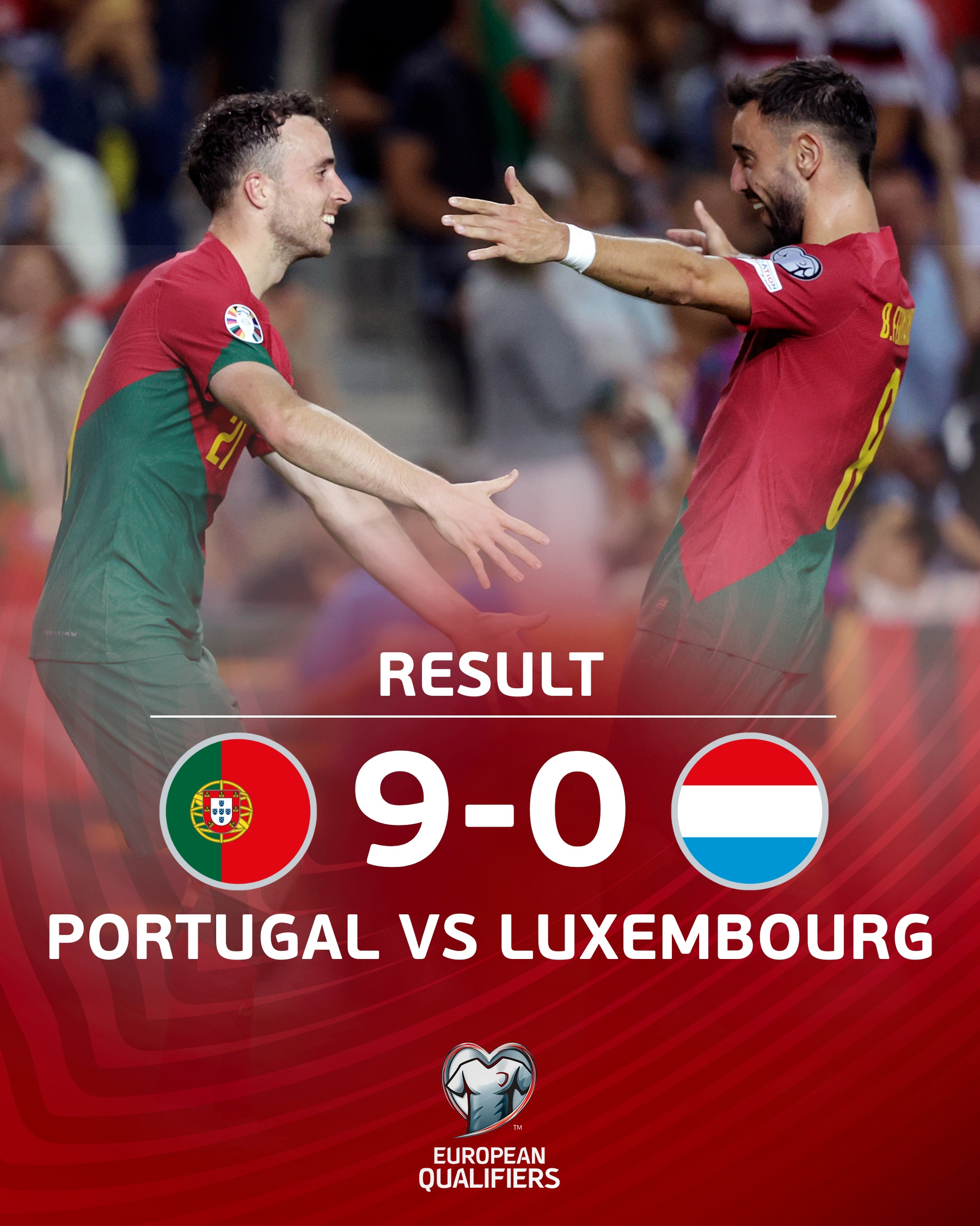 Trong ngày vắng Ronaldo, Bồ Đào Nha làm nên chiến thắng lịch sử 9-0 trước Luxembourg để trở thành đội bóng đầu tiên có mặt ở VCK Euro 2024.