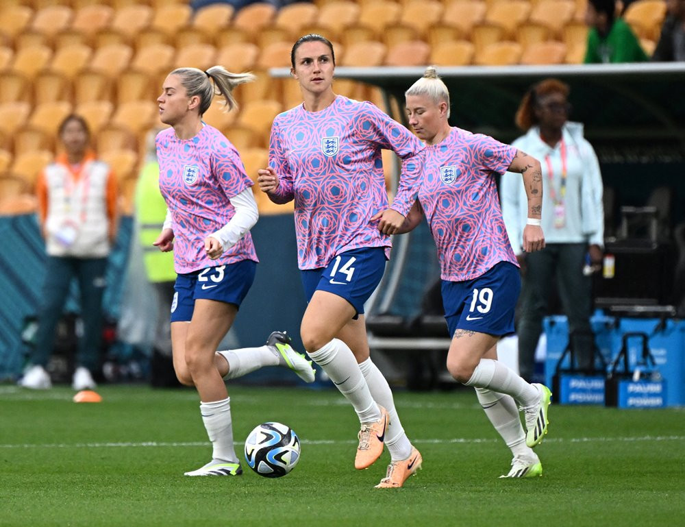Các nữ tuyển thủ Anh ra sân khởi động trước trận