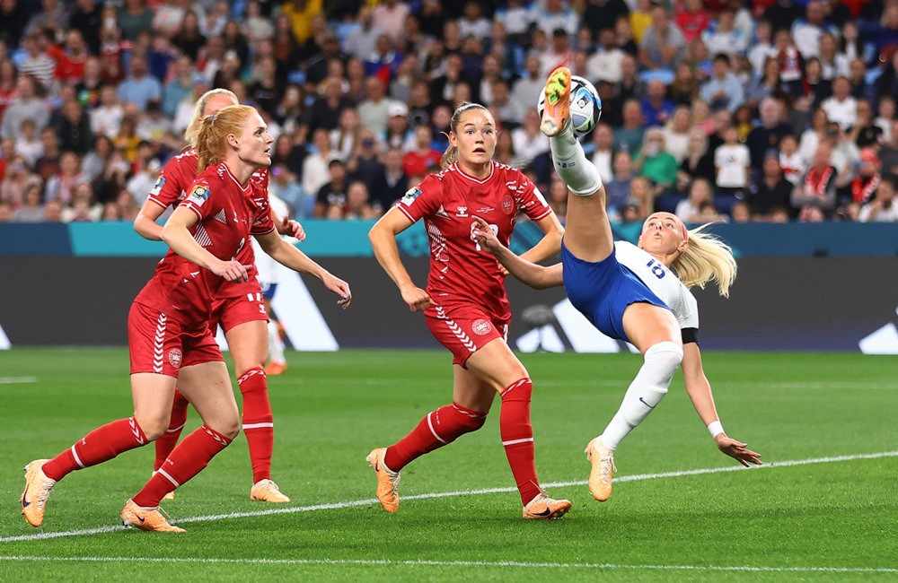 Xuất phát từ pha tấn công bên cánh phải, bóng được luân chuyển sang cánh trái. Lauren James dẫn bóng đến sát vòng cấm rồi thực hiện pha đặt lòng đẹp mắt làm tung lưới nữ Đan Mạch.