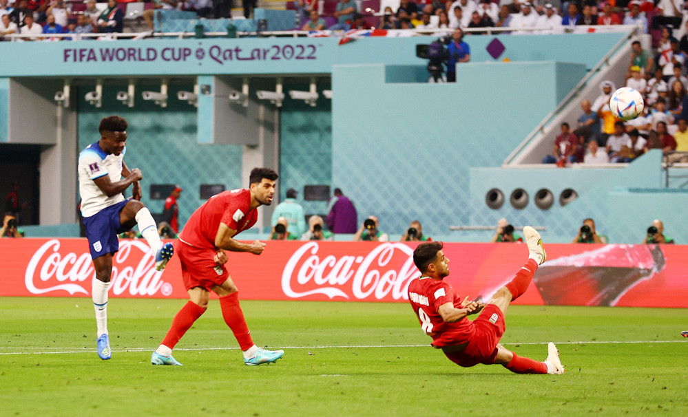 Bàn thắng (2-0, Bukayo Saka): Từ tình huống dàn xếp phạt góc, Maguire đánh đầu kiến tạo cho Saka bắt volley chính diện khung thành tung lưới Iran.