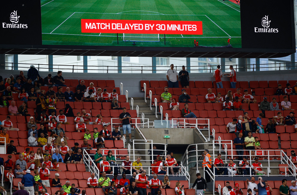 BTC thông báo, trận đấu sẽ diễn ra chậm hơn 30 phút so với dự kiến do nhiều CĐV vẫn chưa thể vào sân.