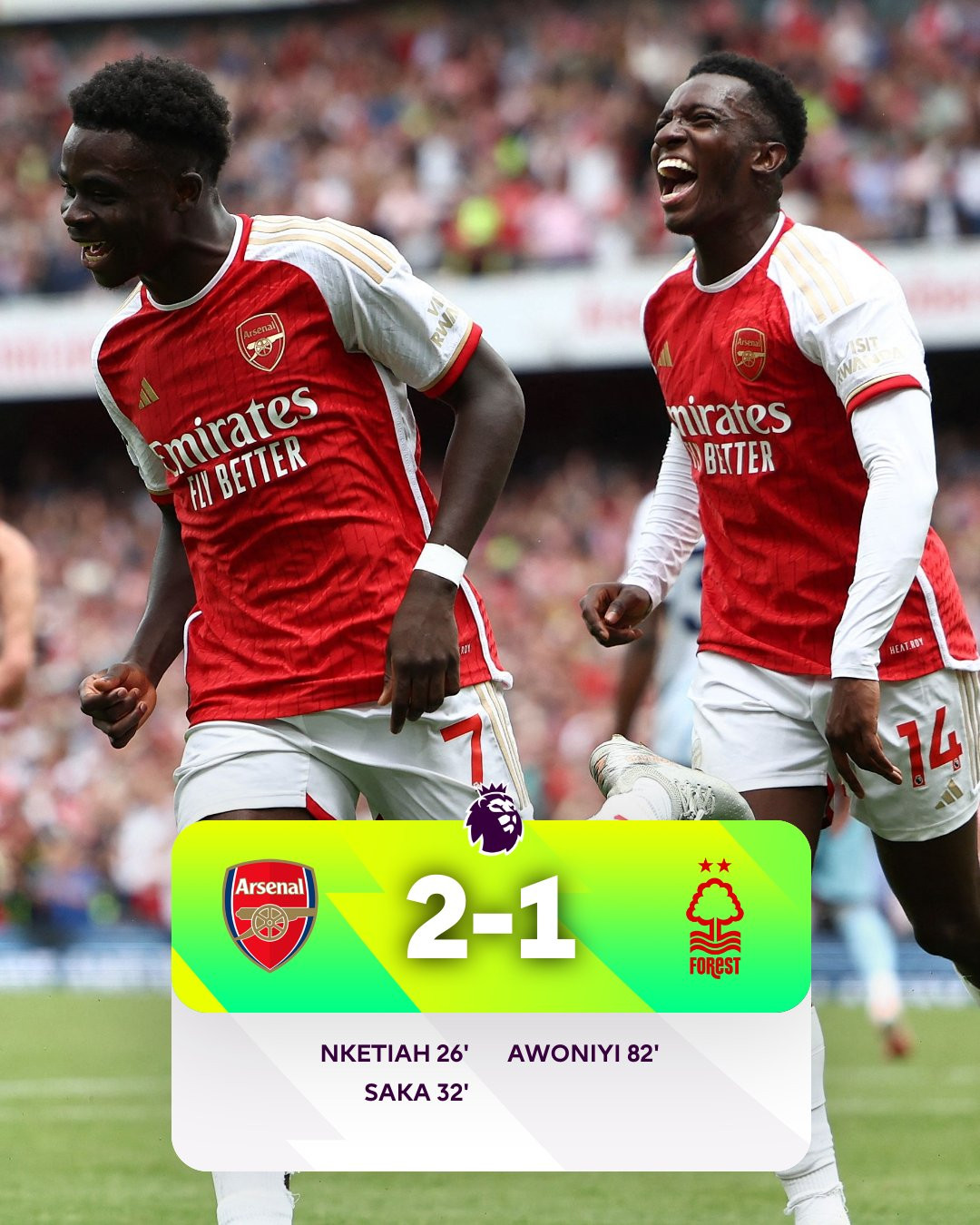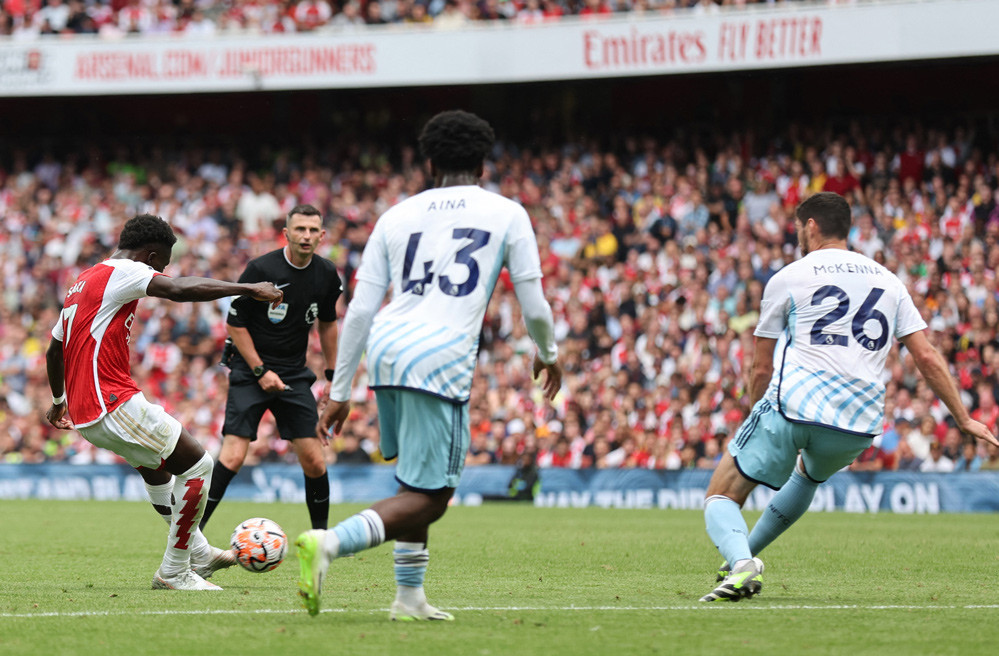 Bàn thắng: Nketiah 26', Saka 33' - Awoniyi 82'