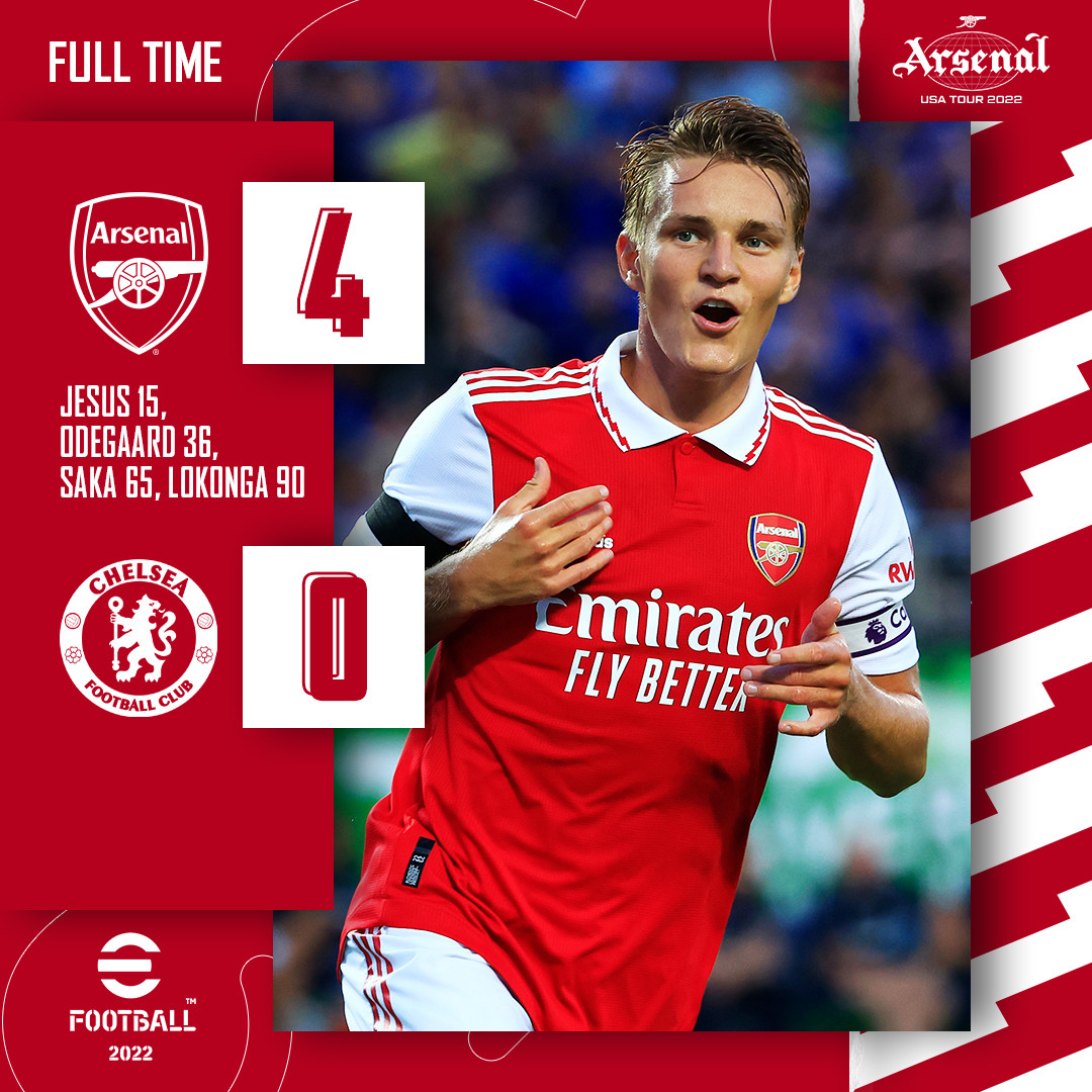 Bàn thắng: Gabriel Jesus 15', Odegaard 36', Saka 66', Lokonga 90'+2