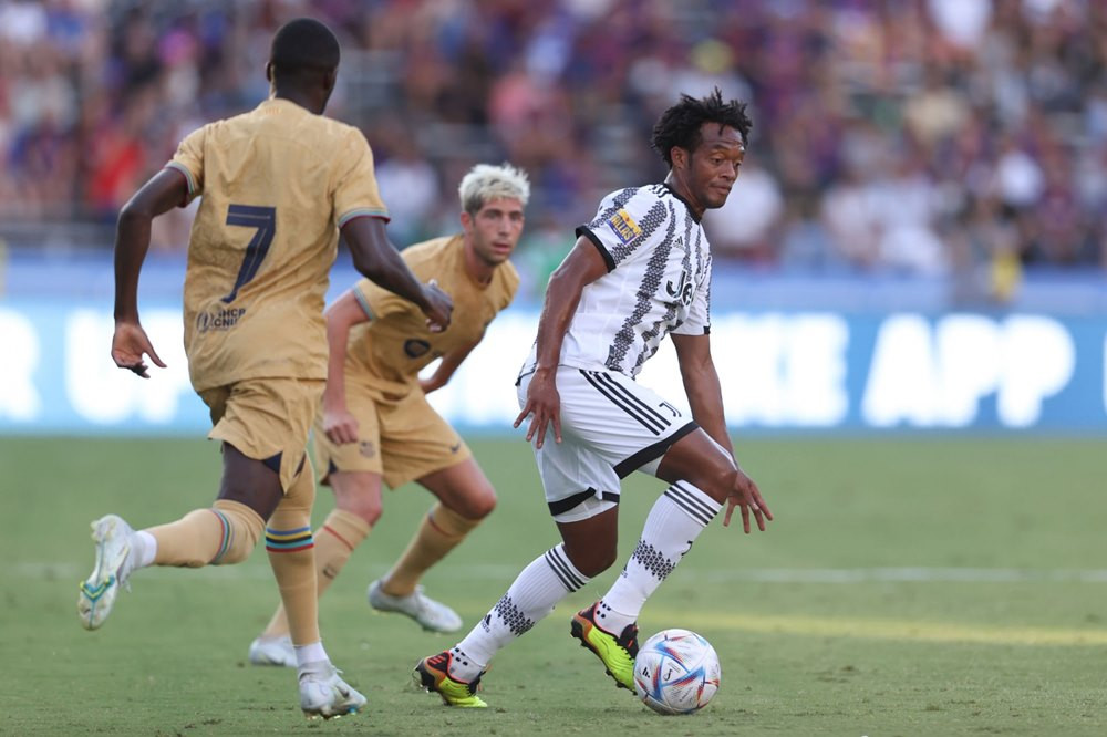 Juventus tổ chức tấn công mạch lạc, Cuadrado tạt bóng chìm từ cánh trái vào để Moise Kean băng lên tốc độ trước khi đệm bóng cận thành tung lưới Barca.