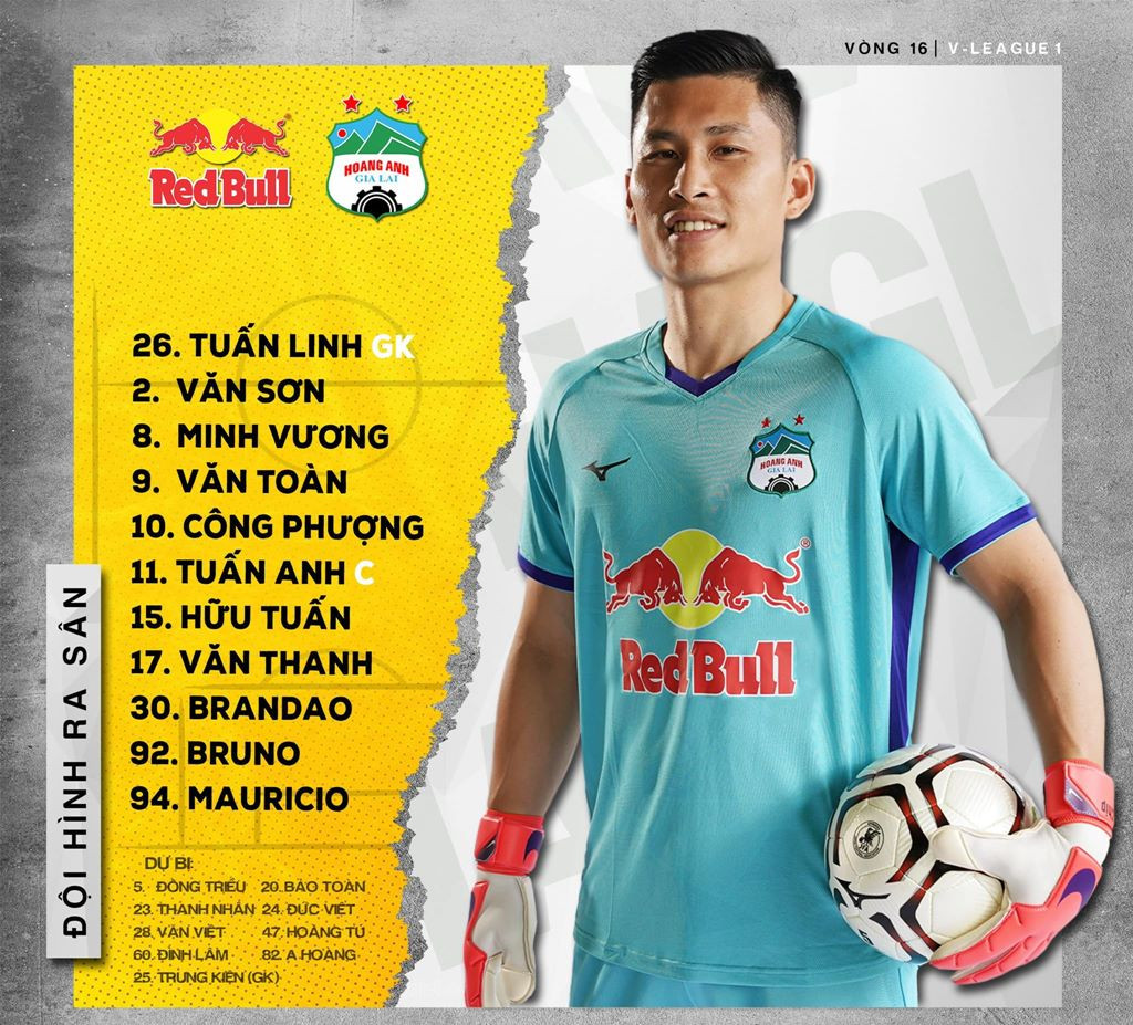 HAGL: Tuấn Linh, Văn Sơn, Hữu Tuấn, Văn Thanh, Mauricio, Minh Vương, Tuấn Anh, Công Phượng, Văn Toàn, Bruno Henrique, Brandao.