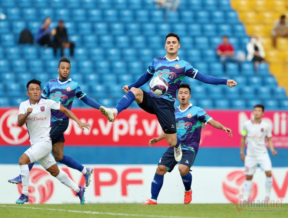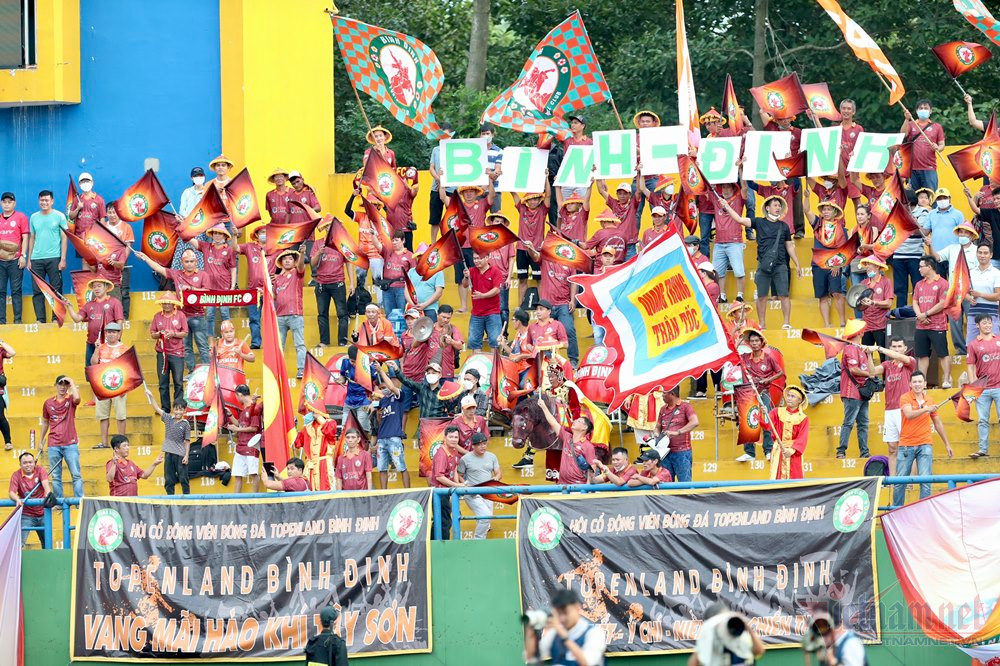 Đón quả tạt có điểm rơi tốt của Thanh Thịnh bên cánh phải, Xuân Nam bật cao đánh đầu đẹp mắt theo phong cách bóng đá Anh đưa Bình Định vượt lên dẫn trước 2-1.