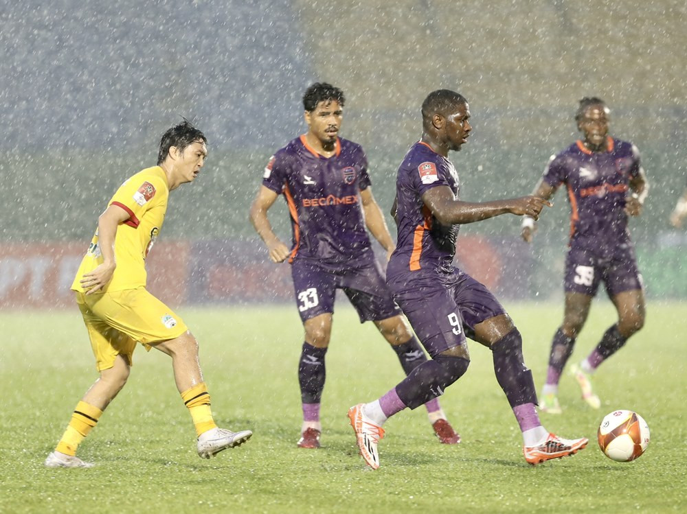 Trọng tài chính thổi còi cho trận đấu được bắt đầu. Hiện tại mưa đang rất dày hạt trên sân Gò Đậu.