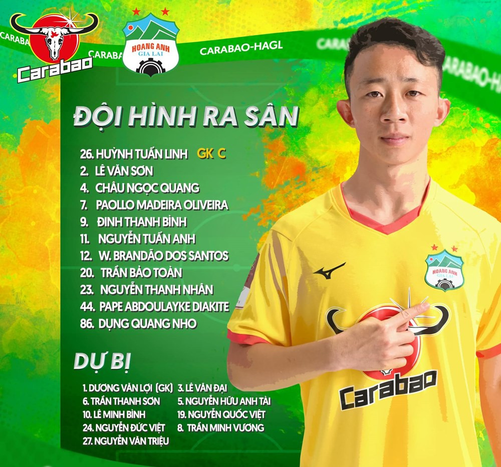 HAGL: Tuấn Linh (26); Văn Sơn (2), Diakite (44), Quang Nho (86), Thanh Nhân (23), Thanh Bình (9), Tuấn Anh (11), Ngọc Quang (4), Bảo Toàn (20); Paollo (7), Brandao (12).