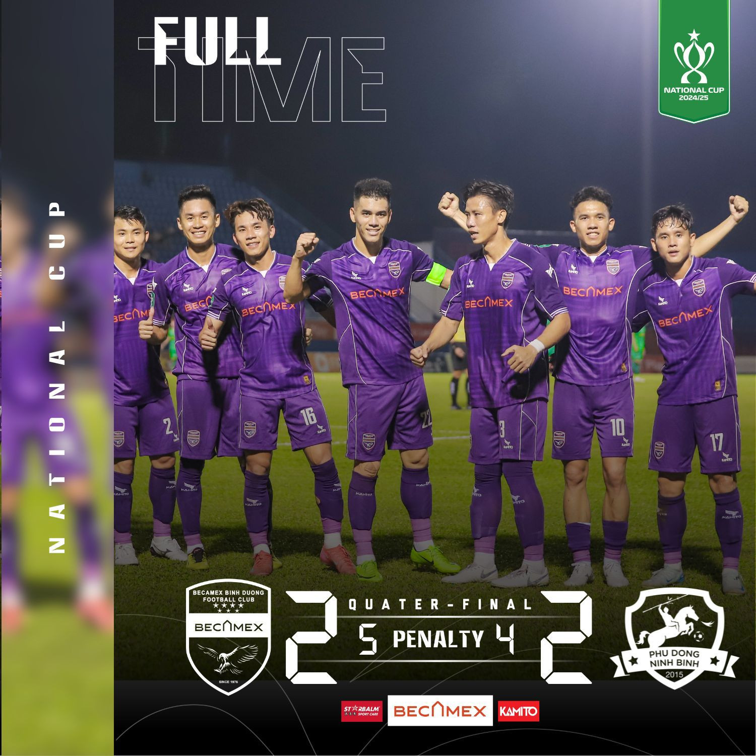 Chung cuộc, B.Bình Dương giành chiến thắng với tỷ số 5-4 ở loạt luân lưu cân não, qua đó trở thành đội bóng đầu tiên góp mặt ở bán kết Cúp Quốc gia 2024/25.