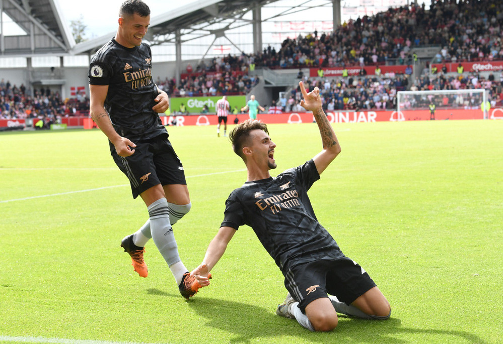 Bàn thắng (0-3, Fabio Vieira): Đón bóng từ Saka, nhận thấy khoảng trống trước mặt, Fabio Vieira nã đại bác sấm sét bằng chân trái, bóng dội cột dọc Brentford bay vào lưới.