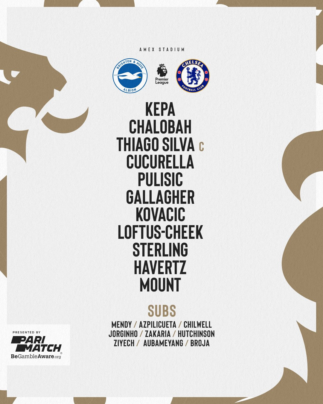 Chelsea: Kepa; Cucurellla, Chalobah, Thiago Silva; Loftus-Cheek, Gallagher, Kovacic, Pulisic; Mount, Sterling, Havertz.