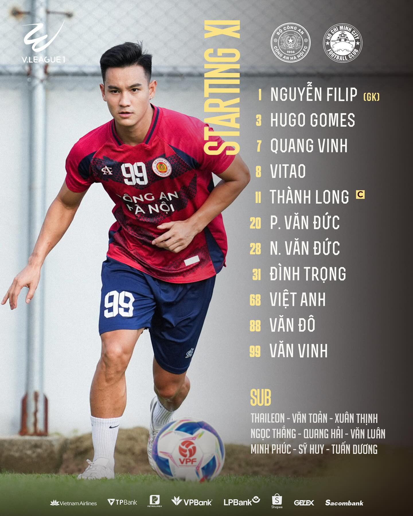 TP.HCM: Nguyễn Mạnh Cường (67), Matheus Duarte (23), Thanh Thảo (3), Trần Mạnh Cường (32), Quốc Cường (15), Hoàng Phúc (28), Việt Hoàng (20), Endrick, Vũ Tín (8), Vĩnh Nguyên (10), Văn Bình (26).