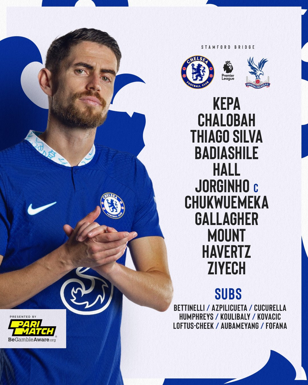 Chelsea: Kepa, Chalobah, Thiago Silva, Badiashile, Lewis Hall, Jorginho, Chukwuemeka, Gallagher, Mount, Havertz, Ziyech.