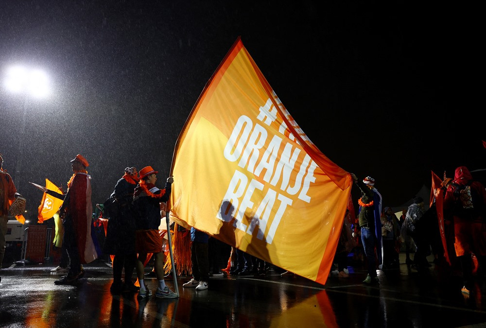 CĐV Hà Lan đội mưa đến SVĐ Dunedin để cổ vũ đội nhà