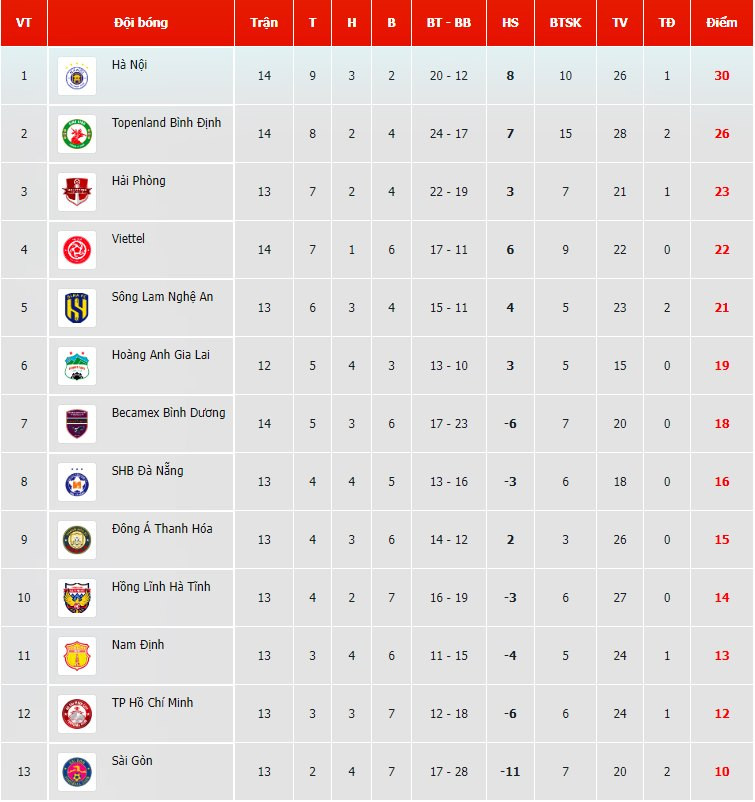 Trận đấu kết thúc với chiến thắng tưng bừng 3-0 dành cho Bình Định ngay trên sân Hàng Đẫy. Với thắng lợi này, thầy trò HLV Nguyễn Đức Thắng thu hẹp khoảng cách trên bảng xếp hạng với chính đối thủ xuống còn 4 điểm.