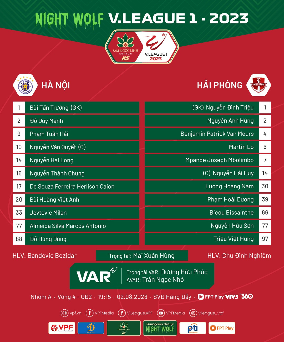 Trận đấu kết thúc với chiến thắng 3-1 dành cho Hà Nội trước Hải Phòng. Kết quả này giúp đội ĐKVĐ có được 32 điểm để giữ ngôi đầu V-League sau vòng 4 giai đoạn 2 V-League 2023.