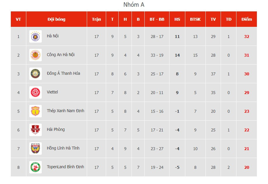 Bảng xếp hạng V-League 2023 vòng 4 giai đoạn 2 mới nhất