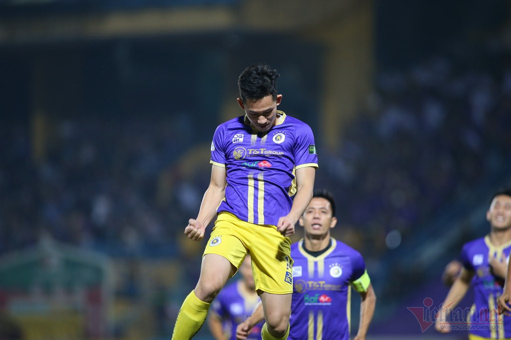 BÀN THẮNG! Hà Nội 2-0 Nam Định (Đoàn Văn Hậu): Đội trưởng Văn Quyết treo bóng từ tình huống cố định để Văn Hậu thoát xuống đánh đầu tung lưới Nam Định lần thứ 2.