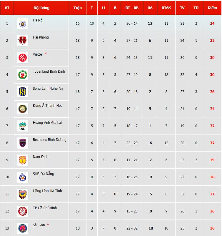 Trận đấu kết thúc với chiến thắng đậm đà 5-2 dành cho Hà Nội trước Nam Định. Kết quả này giúp đội bóng Thủ đô xây chắc ngôi đầu với 37 điểm, hơn đội xếp thứ 2 là Hải Phòng 5 điểm, trong khi vẫn thi đấu ít hơn 1 trận.