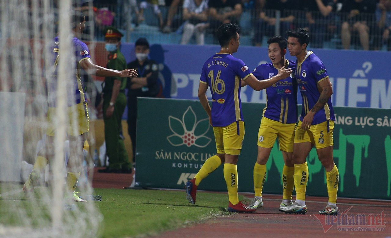 Bàn thắng sớm giúp đội chủ sân Hàng Đẫy thi đấu càng thoải mái hơn. Bên kia chiến tuyến, các học trò của HLV Vũ Hồng Việt gặp nhiều khó khăn trong việc tổ chức lên bóng.