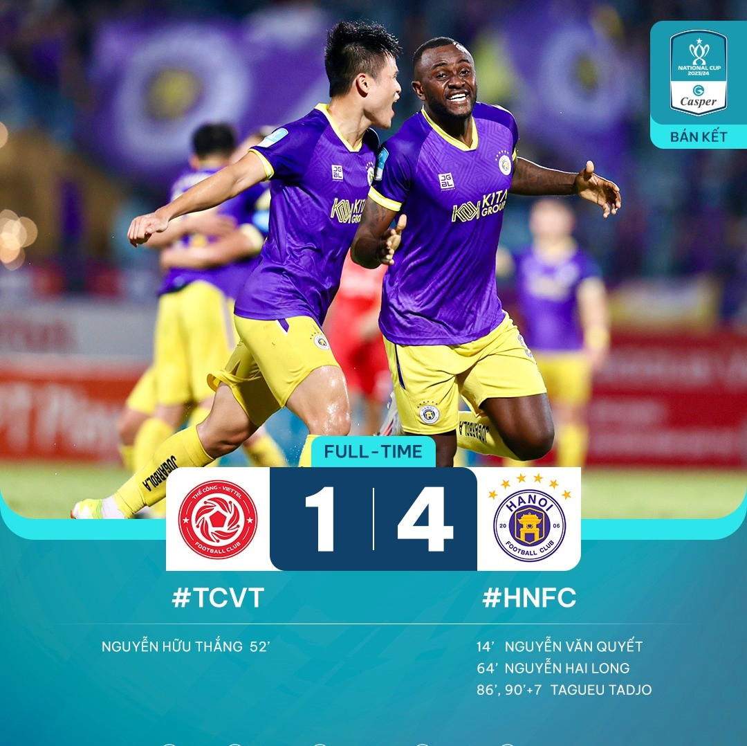 Hà Nội FC: Văn Quyết (12'), Hai Long (63'), Tagueu (86', 90'+7)