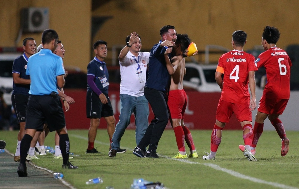Tim Hall treo bóng vào vòng cấm để Văn Xuân đỡ ngực làm tường cho Văn Quyết vượt qua thủ môn và hậu vệ Thể Công Viettel trước khi dễ dàng đưa bóng vào lưới trống.