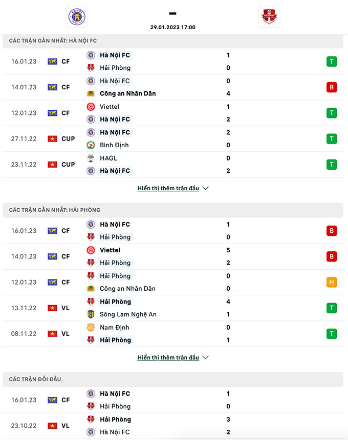 Trên sân Hàng Đẫy, CLB Hà Nội đang bất bại trong 6 trận đấu chính thức. Trận thua gần đây nhất của họ trên sân nhà là trước Bình Định FC vào tháng 9/2022.
