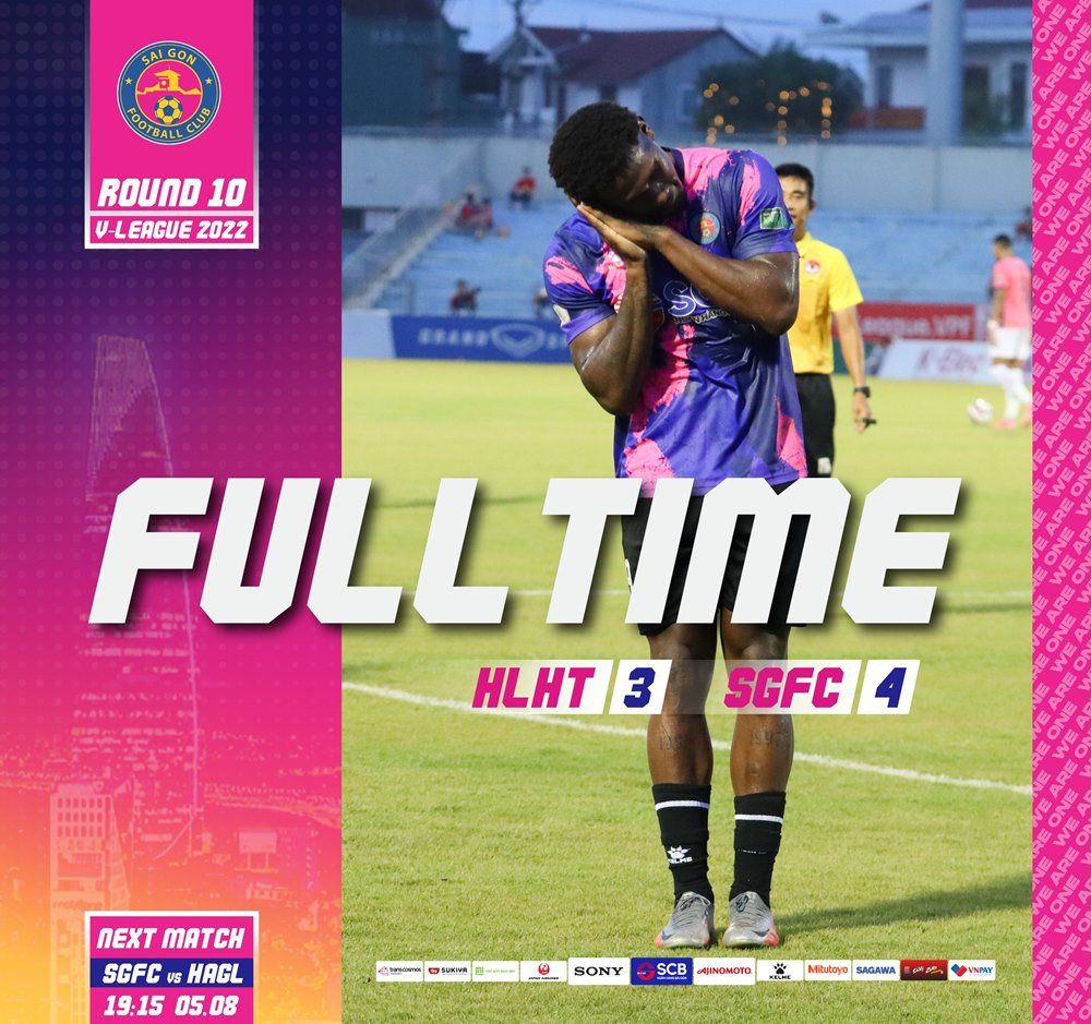 Trận đấu kết thúc với chiến thắng siêu kịch tính 4-3 dành cho Sài Gòn ngay trên sân của Hà Tĩnh. Đây mới là lần đầu tiên ở mùa giải này, thầy trò HLV Phùng Thanh Phương ở mùa giải năm nay.