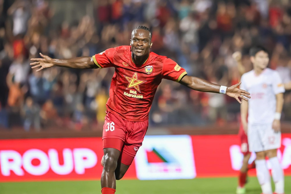 Từ cánh trái, tiền vệ Viktor Lê treo bóng vào vòng cấm để Mbo đánh đầu đưa bóng đi cực khó khiến thủ môn Văn Phong bất lực.