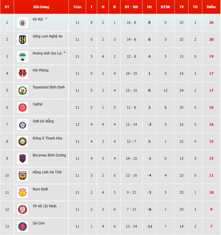 HAGL: Tuấn Linh, Văn Sơn, Maurico, An Sae Hee, Hữu Tuấn, Văn Thanh, Xuân Trường, Tuấn Anh, Văn Toàn, Minh Vương, Brandao.