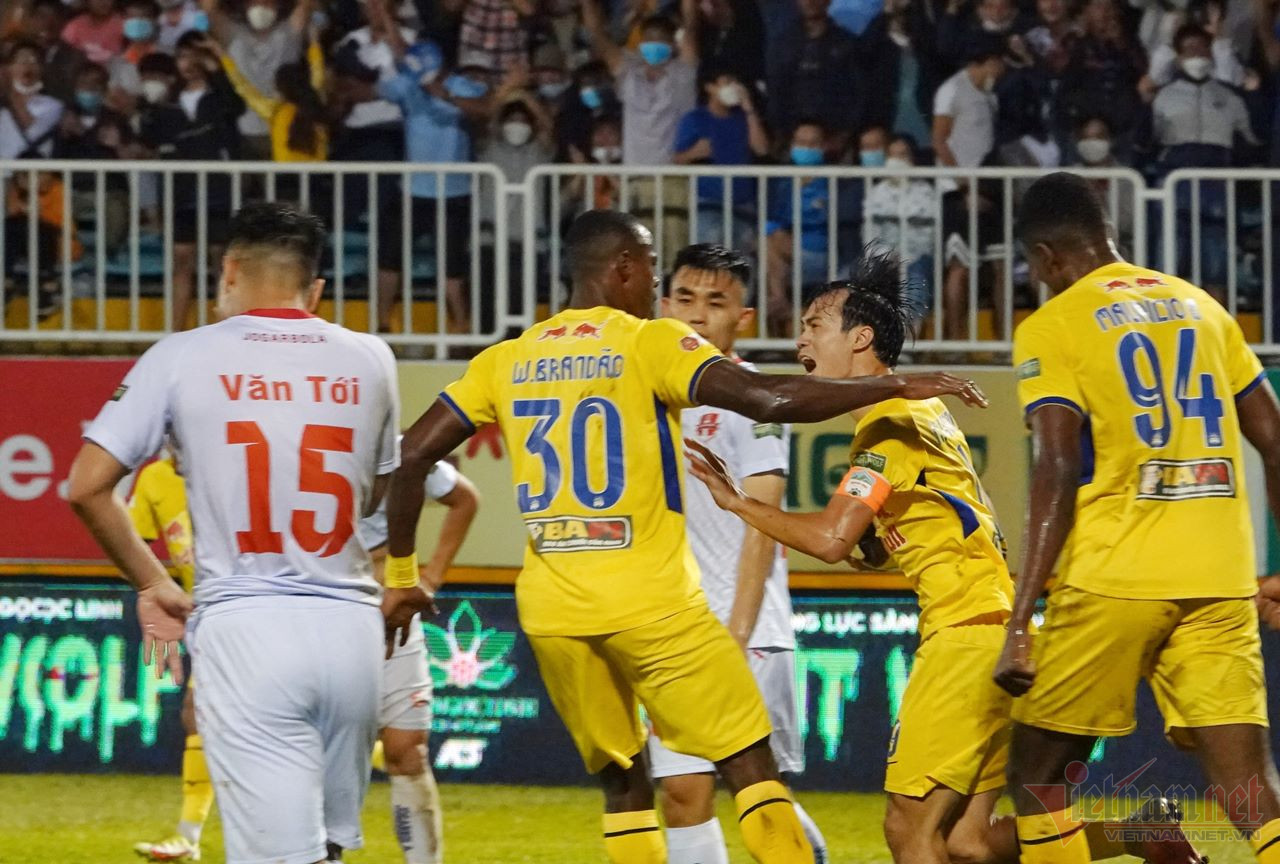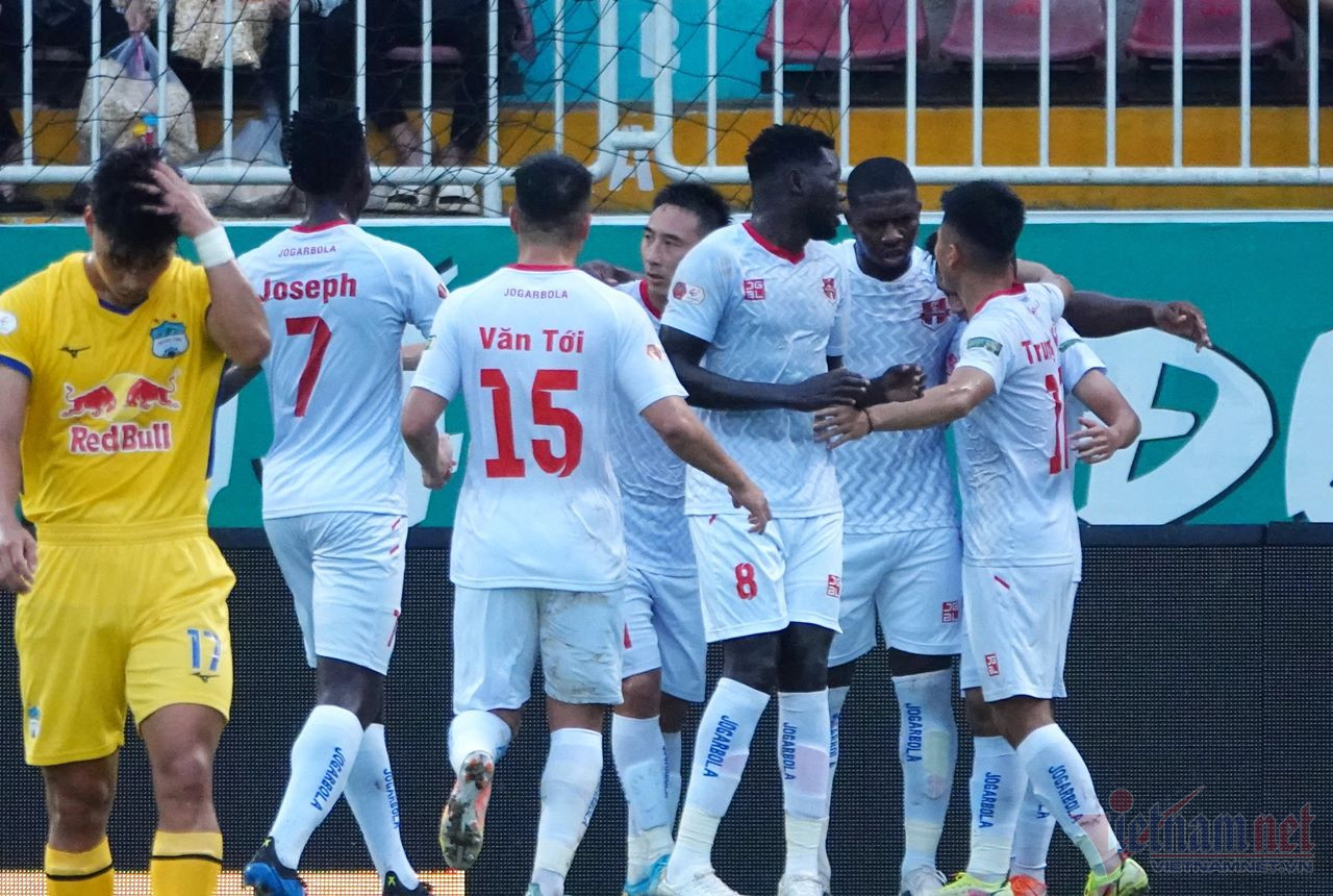 Rimario dứt điểm trúng chân cầu thủ HAGL, bóng bật ra đúng tầm chân Joseph để cầu thủ này tung cú vô-lê cháy lưới HAGL.