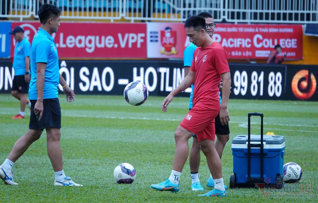 Đầu hiệp hai, HLV Kiatisuk kéo Văn Thanh sang cánh phải đúng sở trường của cầu thủ quê Hải Dương. HAGL vẫn đang bế tắc trong việc tìm kiếm bàn thắng quân bình tỷ số.