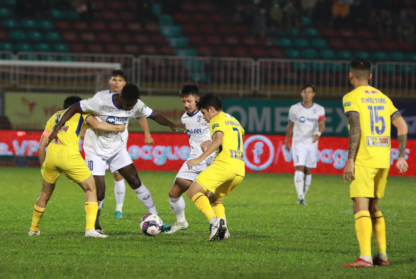 Ít phút sau khi Hồng Duy sút phạt bị thủ môn Văn Hoàng cản phá, đến lượt Văn Thanh cứa lòng không đánh bại được người gác đền của SLNA.