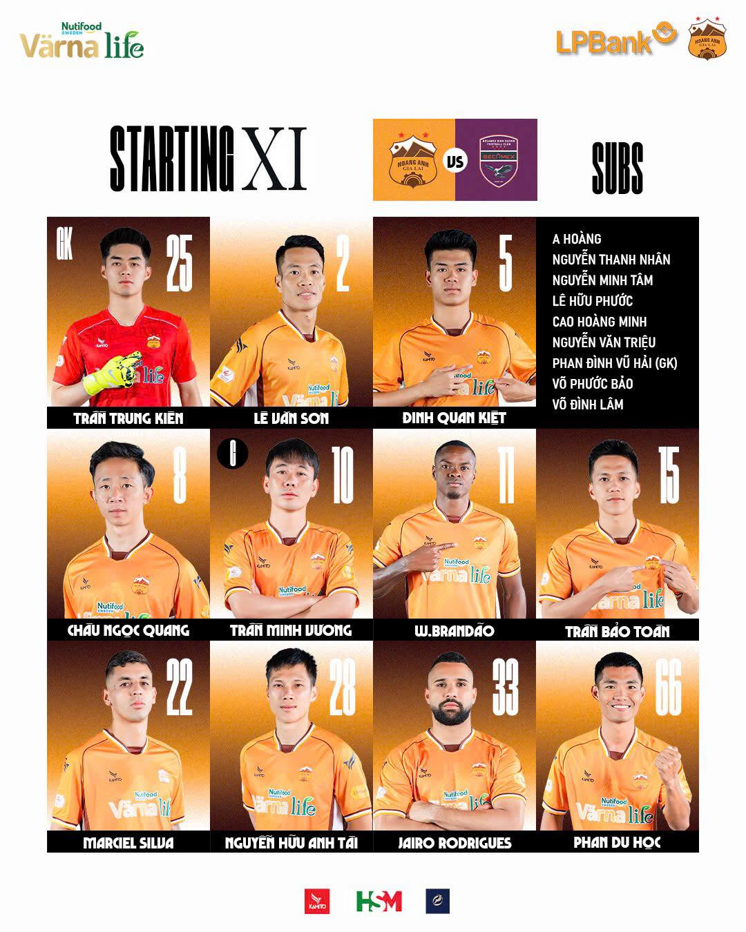 HAGL: Trung Kiên, Văn Sơn, Jairo, Du Học, Minh Vương, Marciel, Ngọc Quang, Anh Tài, Quang Kiệt, Wahington Brandao, Bảo Toàn (Đình Lâm 26')