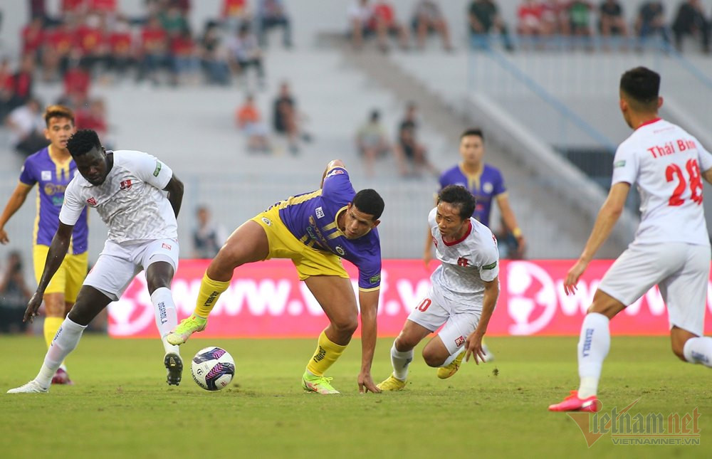 Rimario sút tung lưới Hà Nội tuy nhiên cựu tiền đạo HAGL, Thanh Hóa đã ở vào thế việt vị nên bàn thắng không được tính.