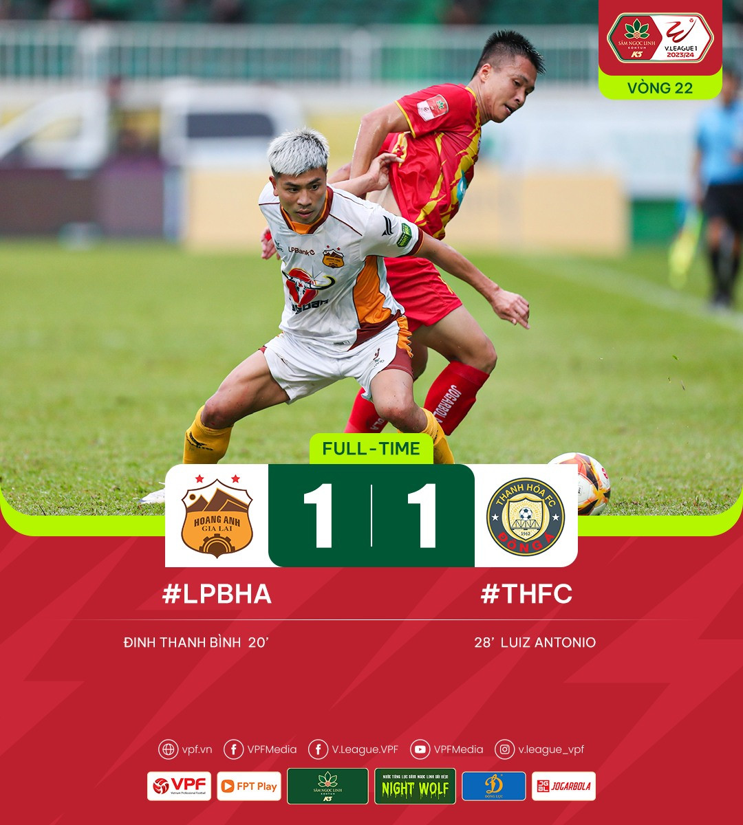 Trận đấu kết thúc với tỷ số hòa 1-1, cùng 1 điểm dành cho mỗi đội.