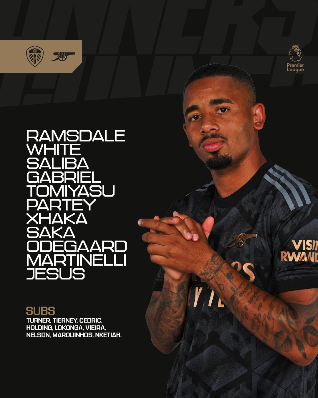 Arsenal: Ramsdale, Ben White, Saliba, Gabriel, Tomiyasu, Partey, Xhaka, Saka, Odegaard, Martinelli, Jesus.