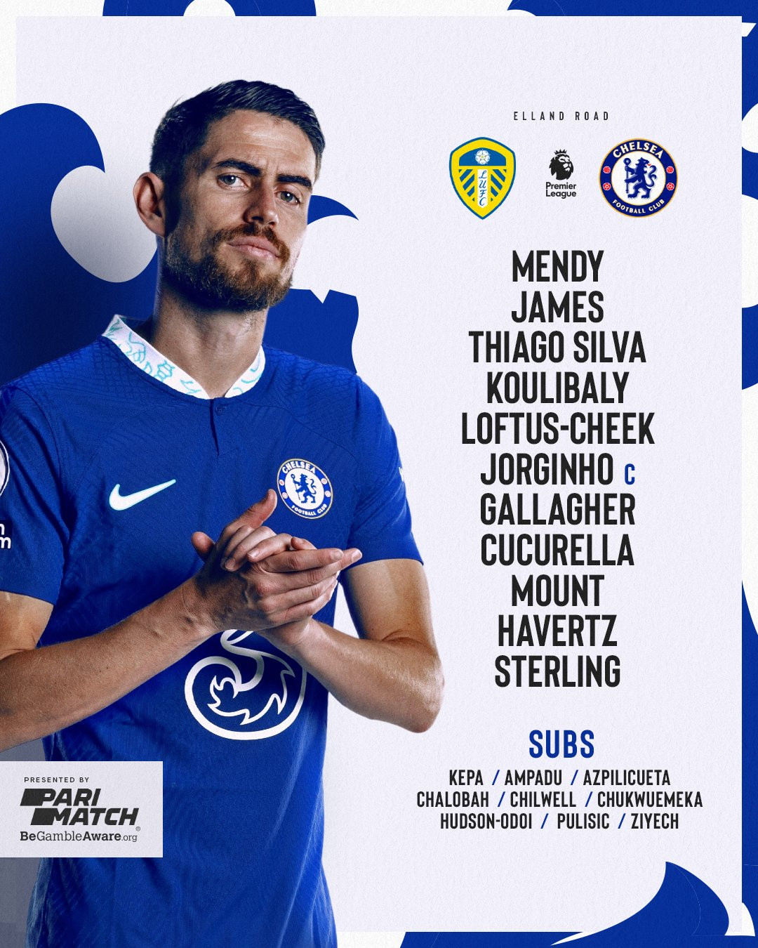Chelsea: Mendy; Silva, Koulibaly; James, Loftus-Cheek, Jorginho, Cucurella, Gallagher; Mount, Sterling; Havertz.