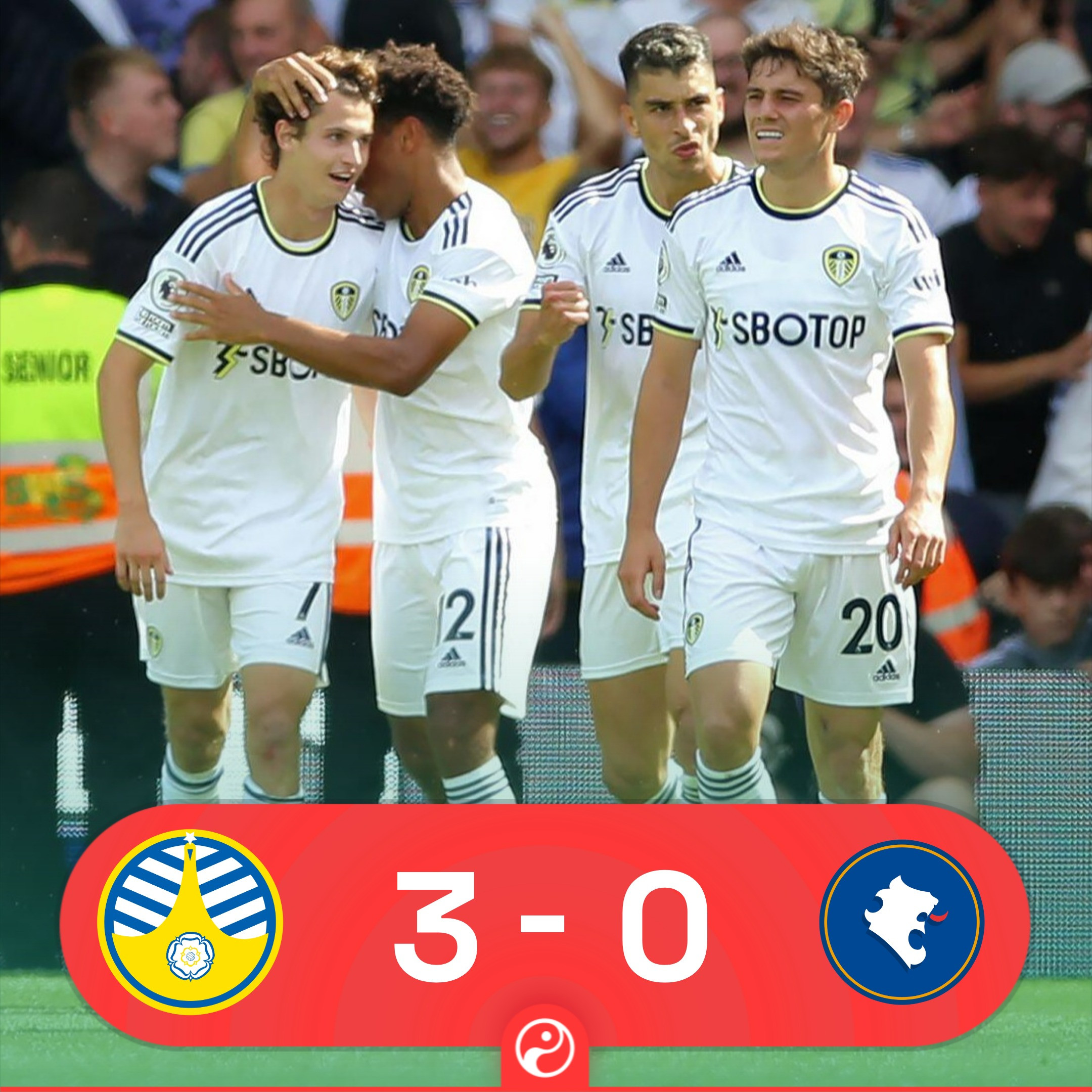 Bàn thắng (2-0, Rodrigo): Leeds được hưởng quả đá phạt bên cánh trái, Harrison chuyền vào cho Rodrigo bay người đánh đầu hiểm hóc nhân đôi cách biệt.