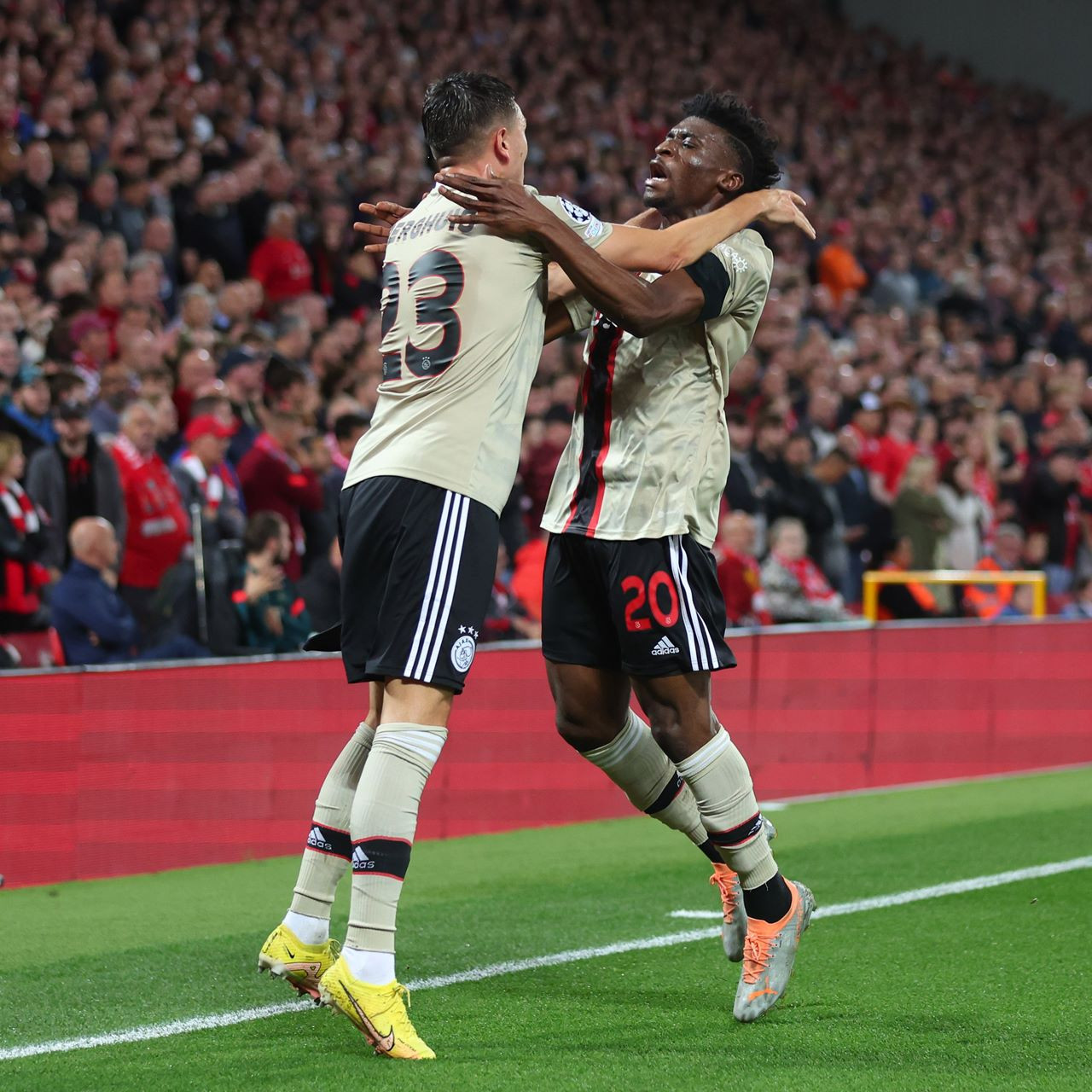 BÀN THẮNG! Liverpool 1-1 Ajax (Mohammed Kudus): Pha tấn công tốt của Ajax bên cánh trái, Mohammed Kudus xử lý tinh tế trong vòng cấm Liverpool rồi tung cú sút căng và hiểm hóc khiến Alisson không thể cản phá.